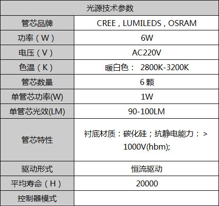 光源技术参数