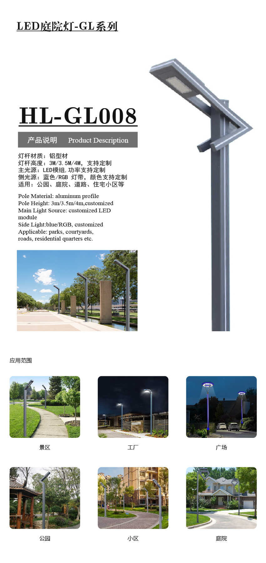 产品型号:HL-GL008庭院灯 应用领域:产品中心 品牌:合力四通 销售热线:0511-85336035159-5127-9212