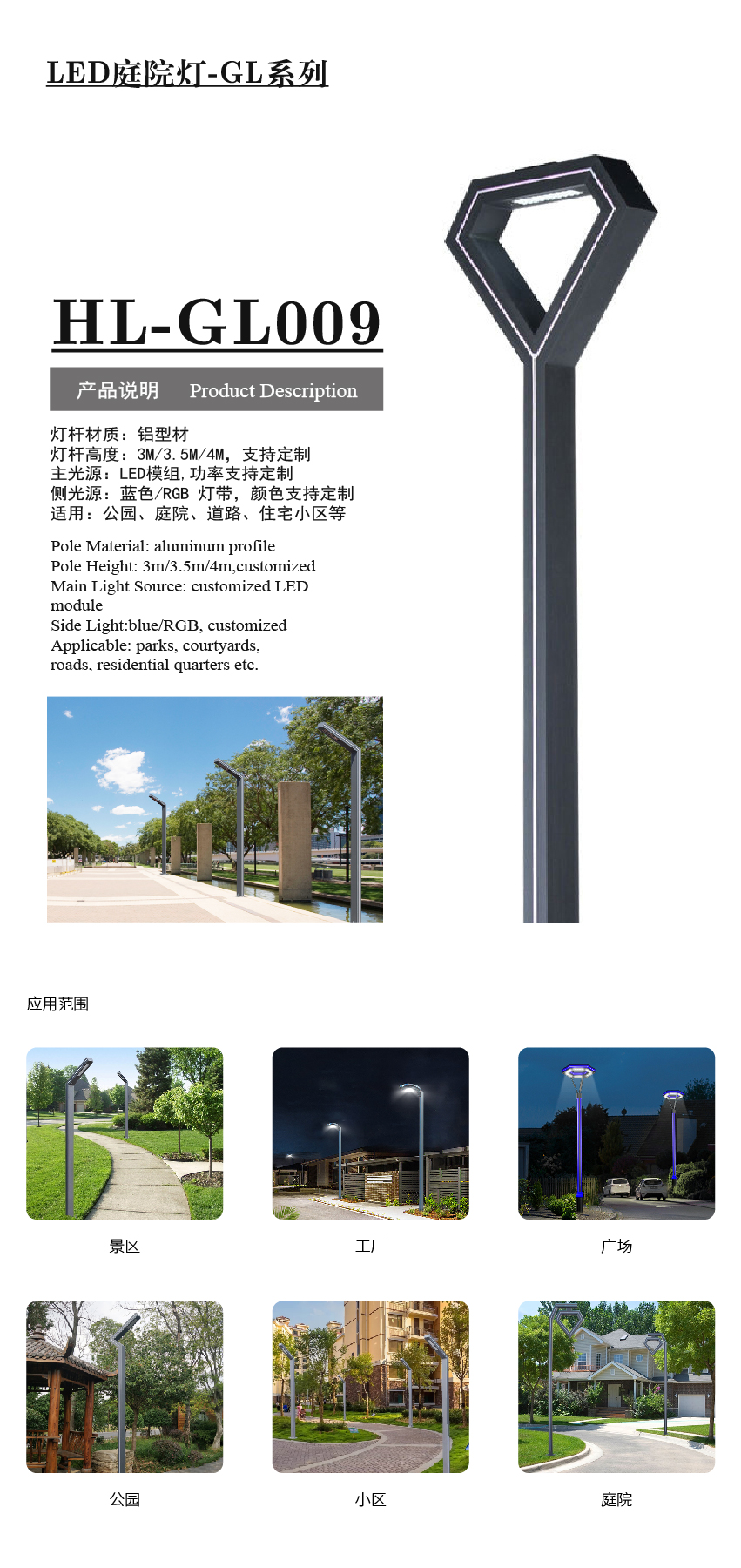 产品型号:HL-GL009庭院灯 应用领域:产品中心 品牌:合力四通 销售热线:0511-85336035159-5127-9212