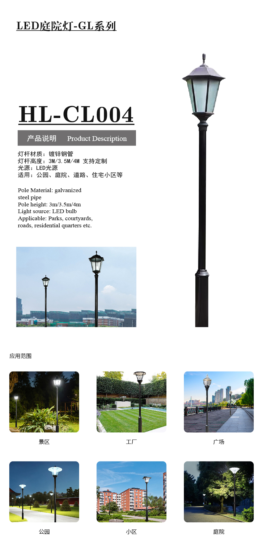 产品型号:HL-CL004庭院灯 应用领域:产品中心 品牌:合力四通 销售热线:0511-85336035159-5127-9212