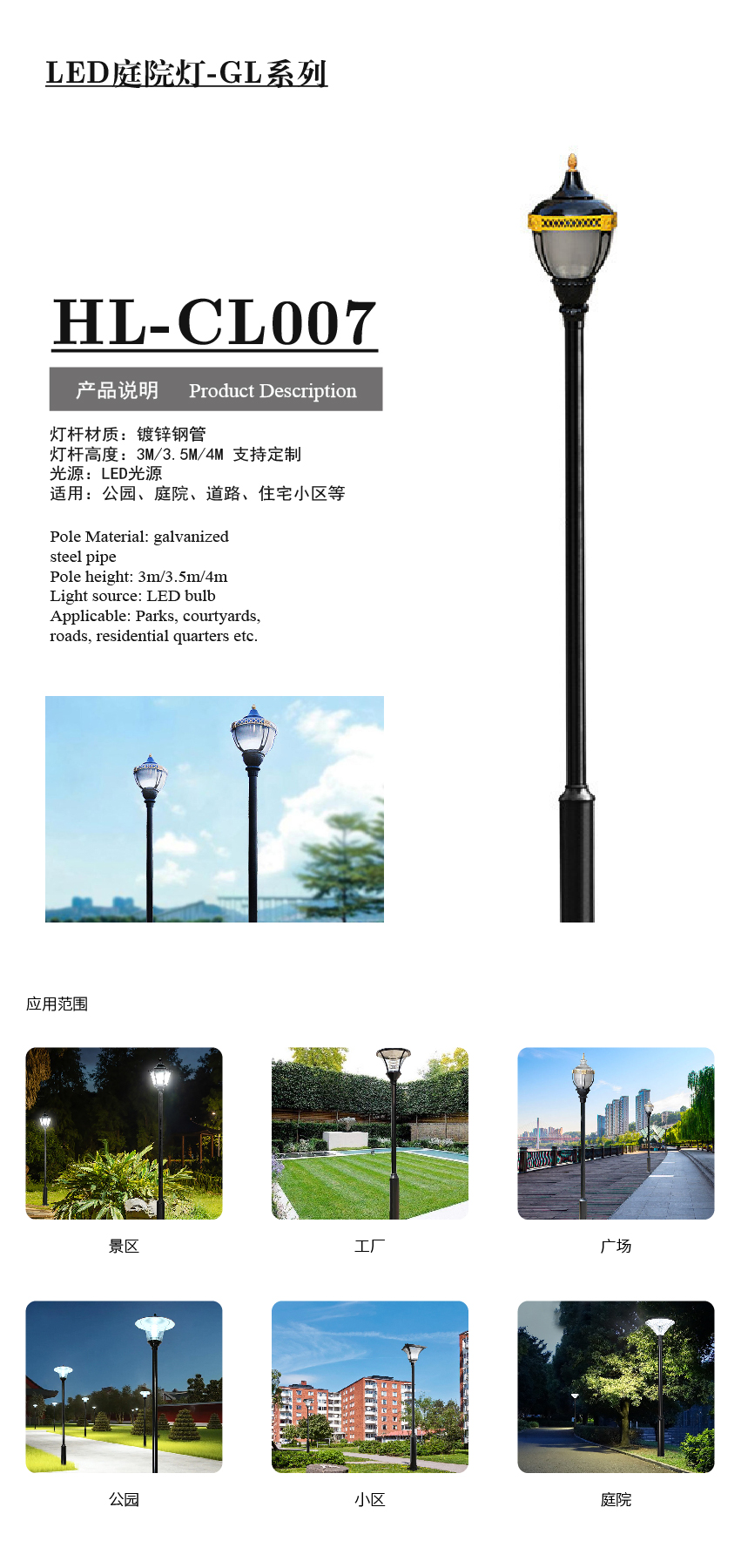 产品型号:HL-CL007庭院灯 应用领域:产品中心 品牌:合力四通 销售热线:0511-85336035159-5127-9212