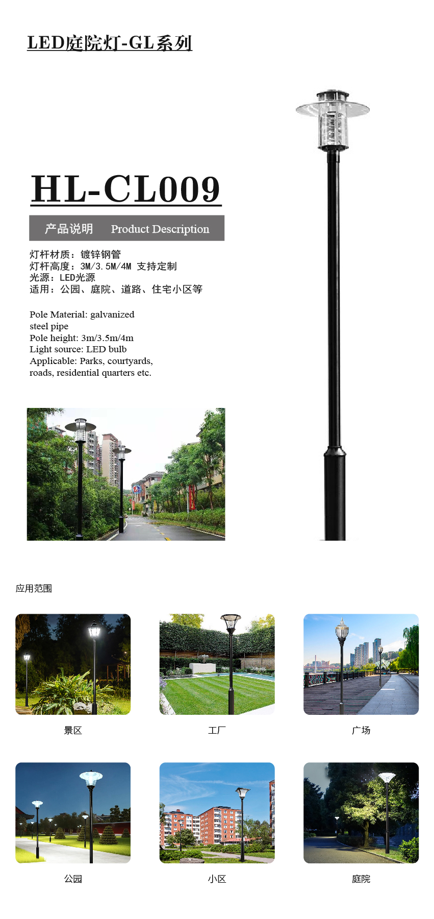 产品型号:HL-CL009庭院灯 应用领域:产品中心 品牌:合力四通 销售热线:0511-85336035159-5127-9212