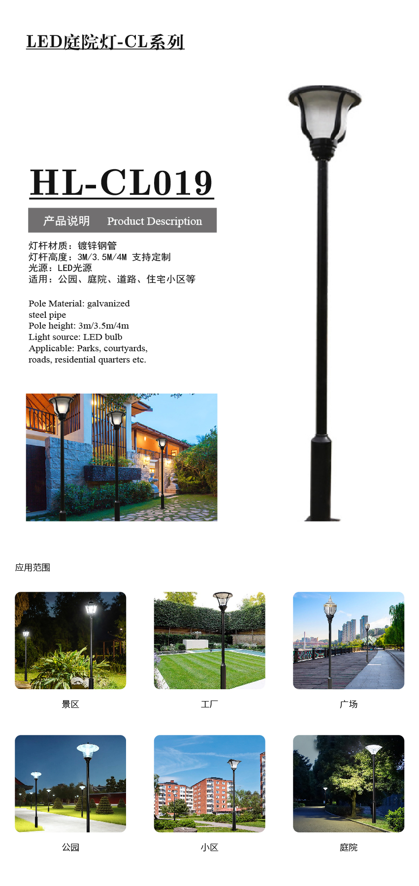 产品型号:HL-CL019庭院灯 应用领域:产品中心 品牌:合力四通 销售热线:0511-85336035159-5127-9212