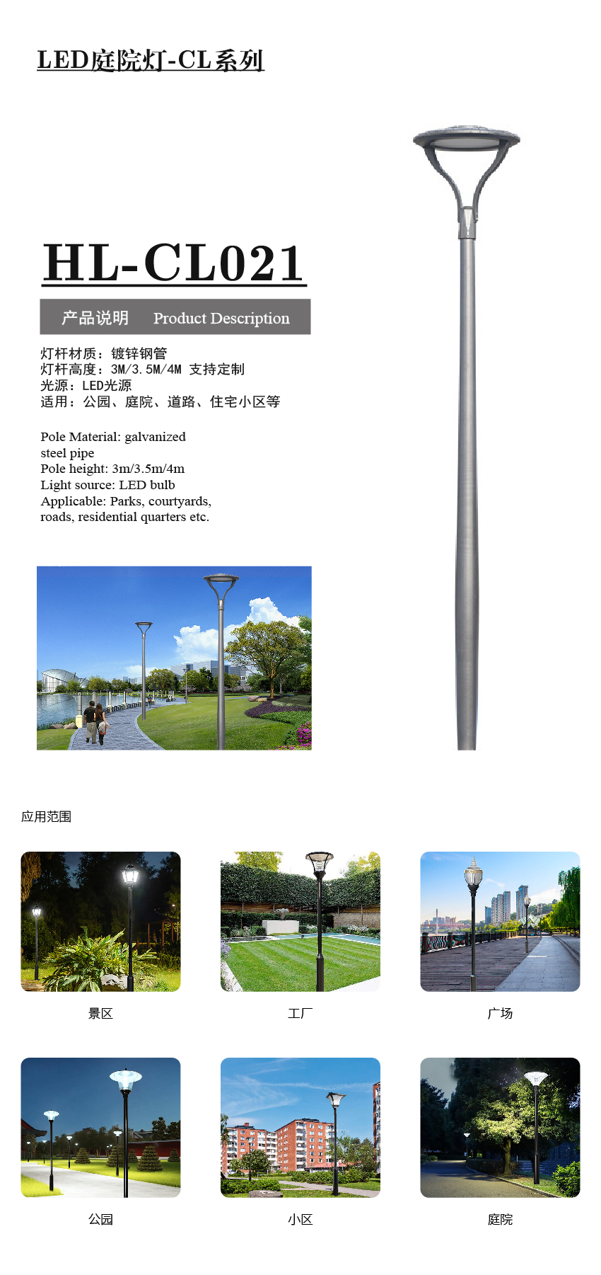 产品型号:HL-CL021庭院灯 应用领域:产品中心 品牌:合力四通 销售热线:0511-85336035159-5127-9212