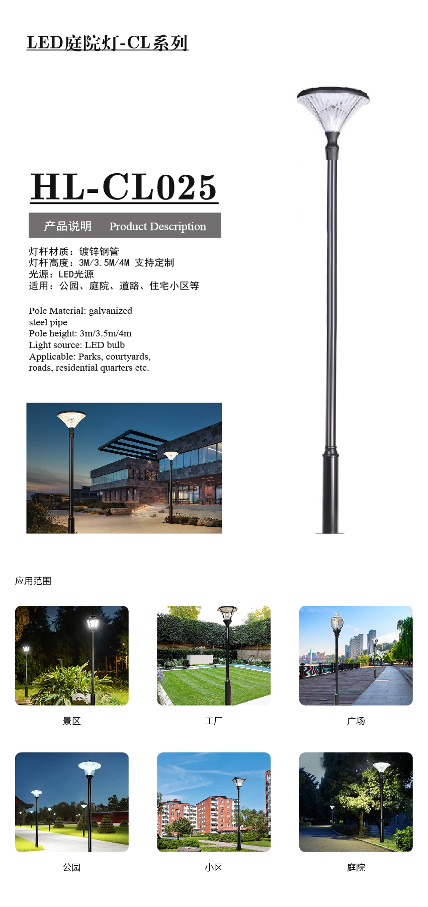 产品型号:HL-CL025庭院灯 应用领域:产品中心 品牌:合力四通 销售热线:0511-85336035159-5127-9212