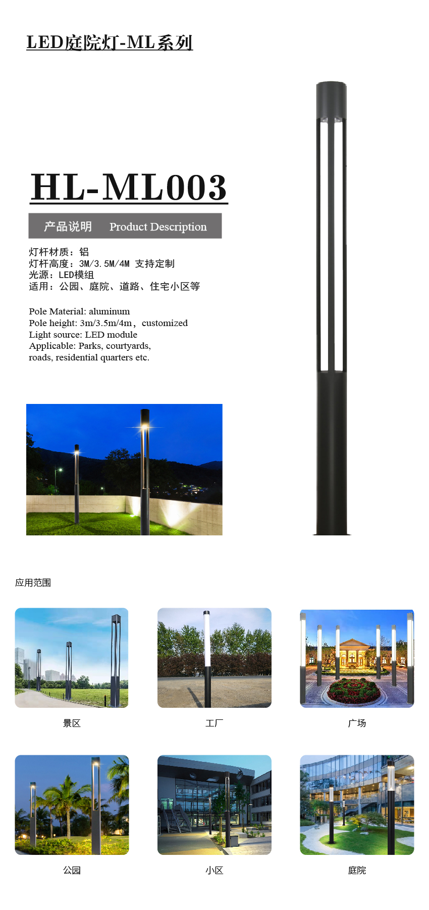 产品型号:HL-ML003庭院灯 应用领域:产品中心 品牌:合力四通 销售热线:0511-85336035159-5127-9212