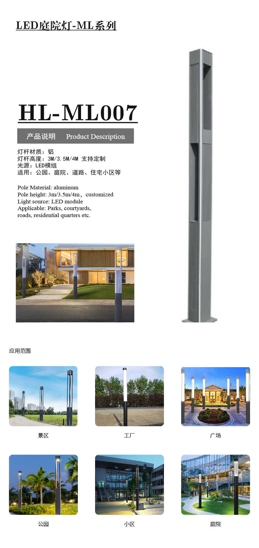 产品型号:HL-ML007庭院灯 应用领域:产品中心 品牌:合力四通 销售热线:0511-85336035159-5127-9212
