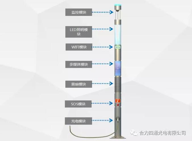 多功能智慧灯杄是以“集约化、智能化”为指导思想,“一杄多用,多杄合一”为设计原则,将智能照明控制器、监控摄像头、多媒体屏、音箱、传感器、通信设施、WiFi、5G 、交通指示标志、各类网关和中继节点等硬件系统或设施按需融合到LED路灯不灯杄系统中,实现道路设施(路灯杄、监控杄、通信杄、电线杄、各类指示不显示牌杄等)。通过软件定制开发将各功能应用拓展出来,以满足照明、治安、城管、交通、旅游等领域的管理需求以及提供便民设施,形成的一种“智慧型”多功能路灯系统,它是综合了采集、计算、网络、物理环境的多维复杂体系,这种系统实现了城市设施集约化不美观,减少了道路设施繁杂增施带来的资源浪费不扰民。